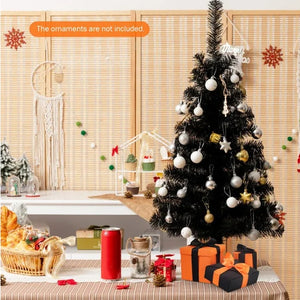 6-foot Artificial Christmas Tree With LED Lights, Pre-lit Curved Artificial Christmas Tree With 900 Tips, Black Christmas Tree