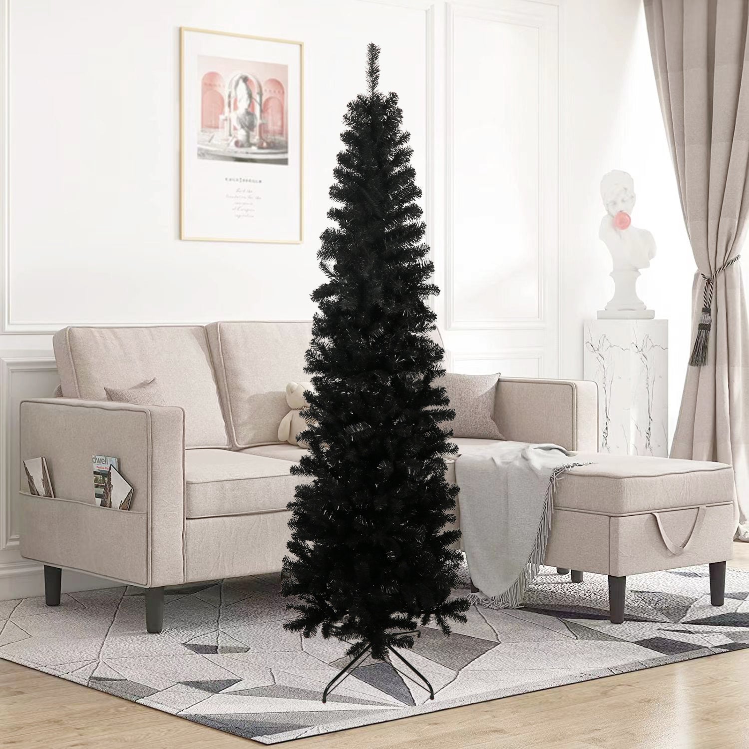 7.5 ft. Black Slender Artificial Christmas Tree Including Collapsible Metal Stand